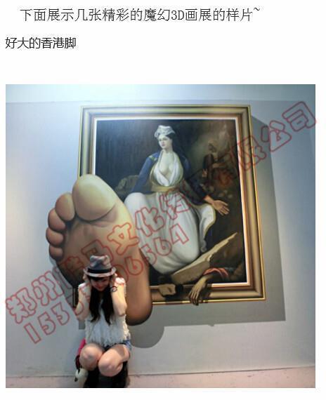 3D画目前以艺术馆展览展示的形式走进人们的视野,2014年全球2000万人在观赏3D魔幻艺术展的同时又通过手机和相机拍照再经现代网络(QQ、微信、微博)媒体让更多人对3D艺术心向往之!