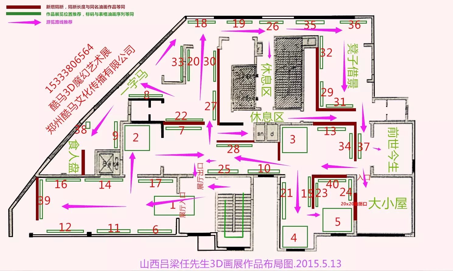 盈利性3D画展展厅作品布置图示例