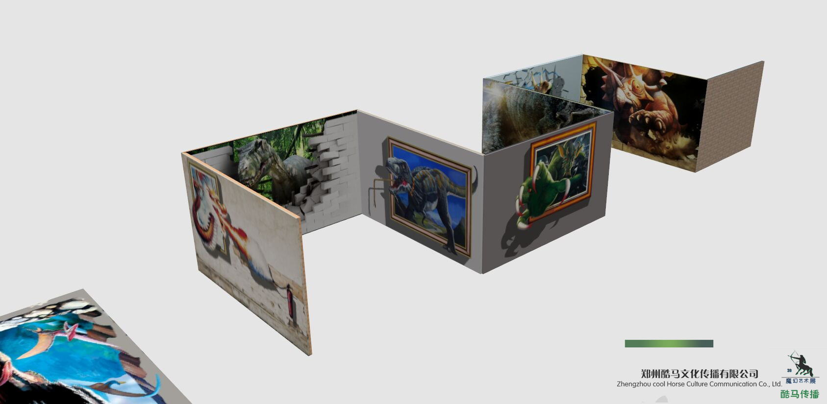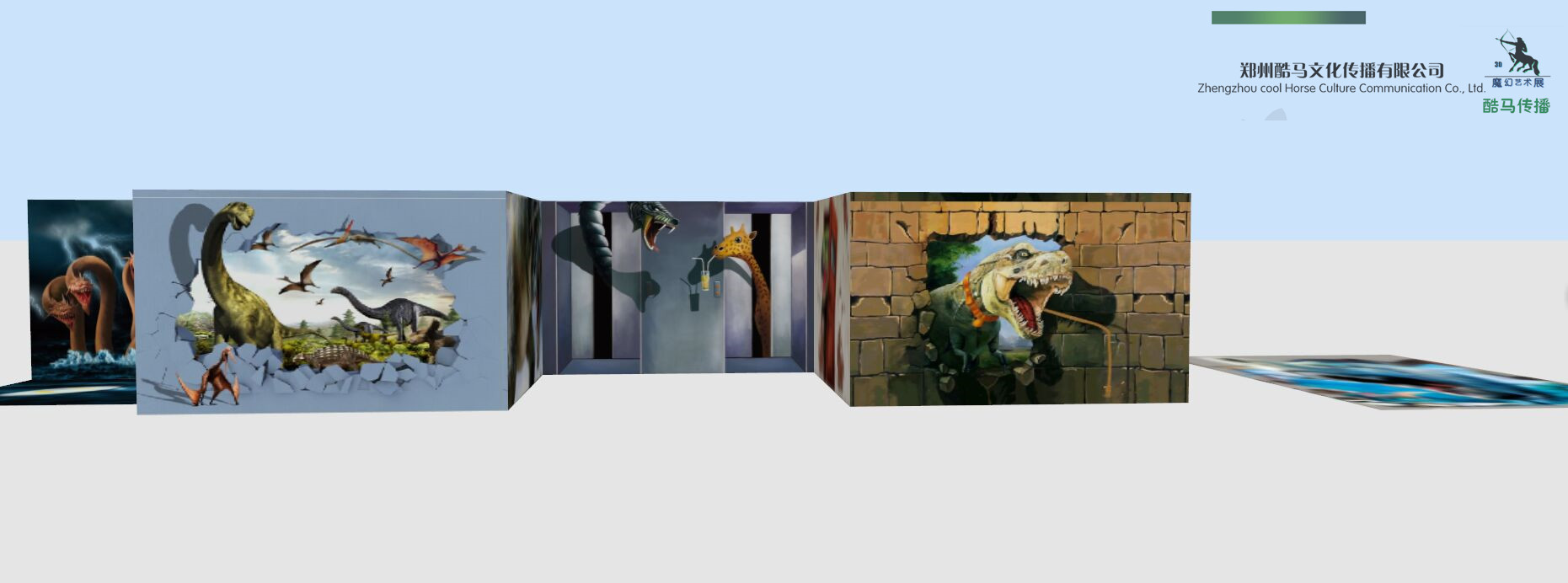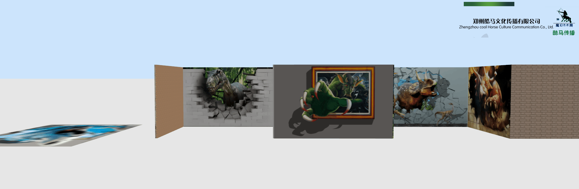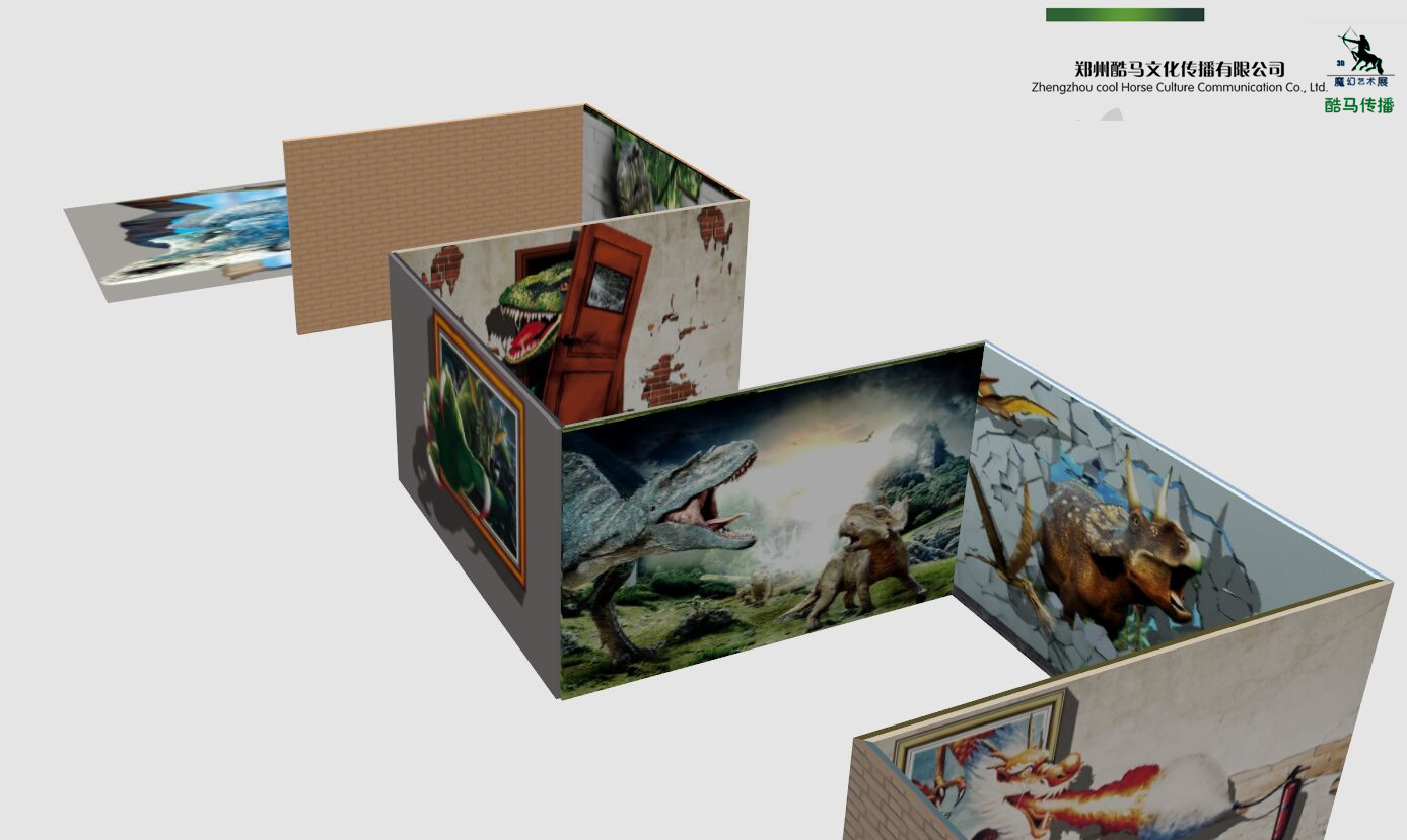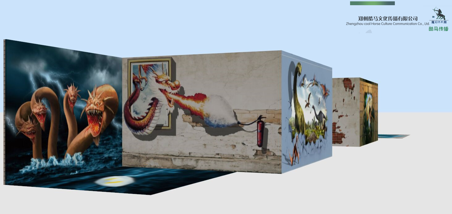 酷马3D恐龙园由15幅墙画、墙地画、地画作品组成