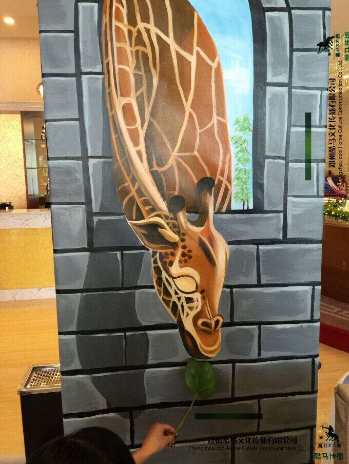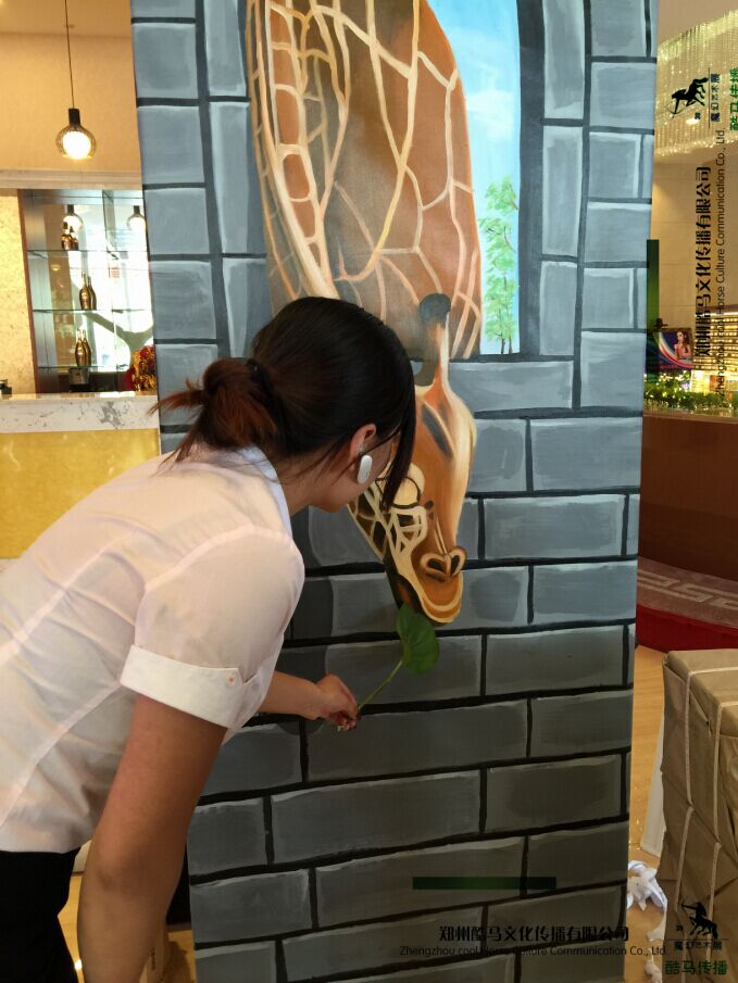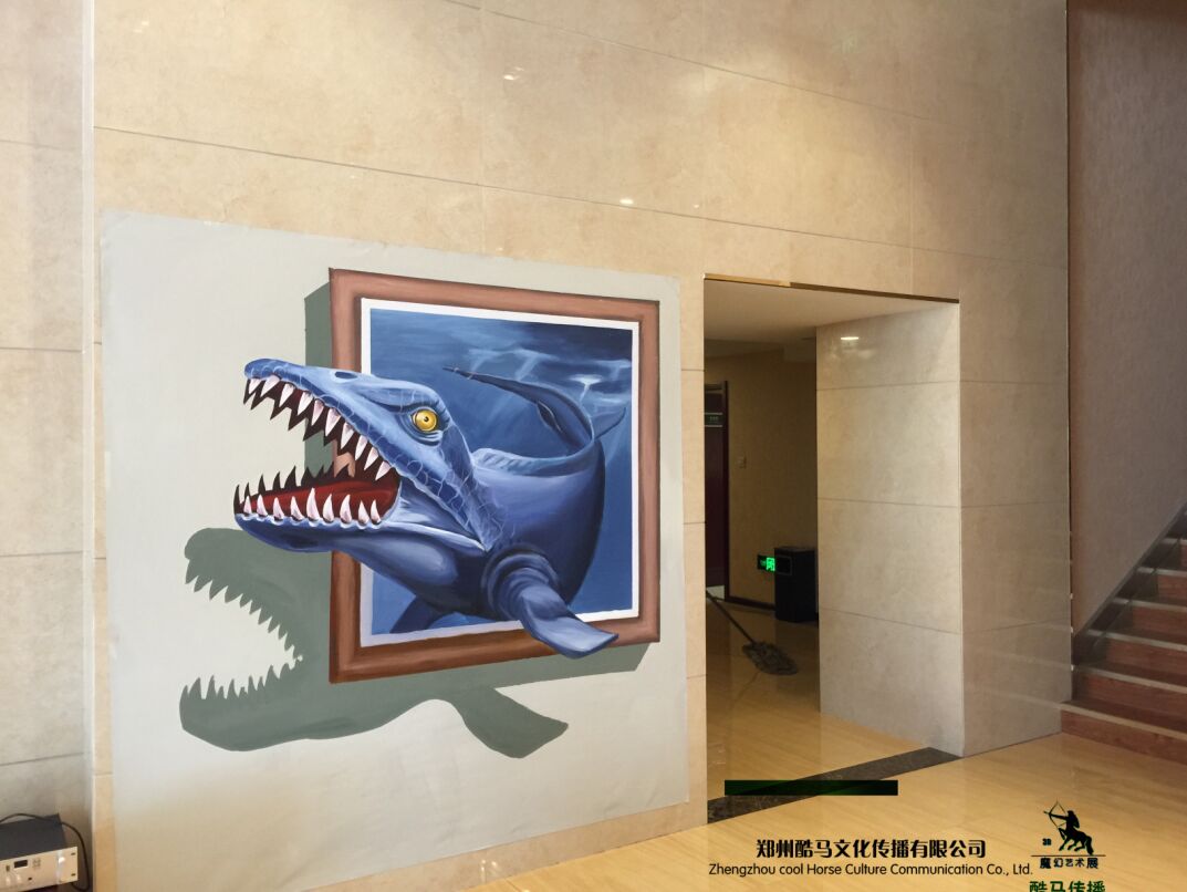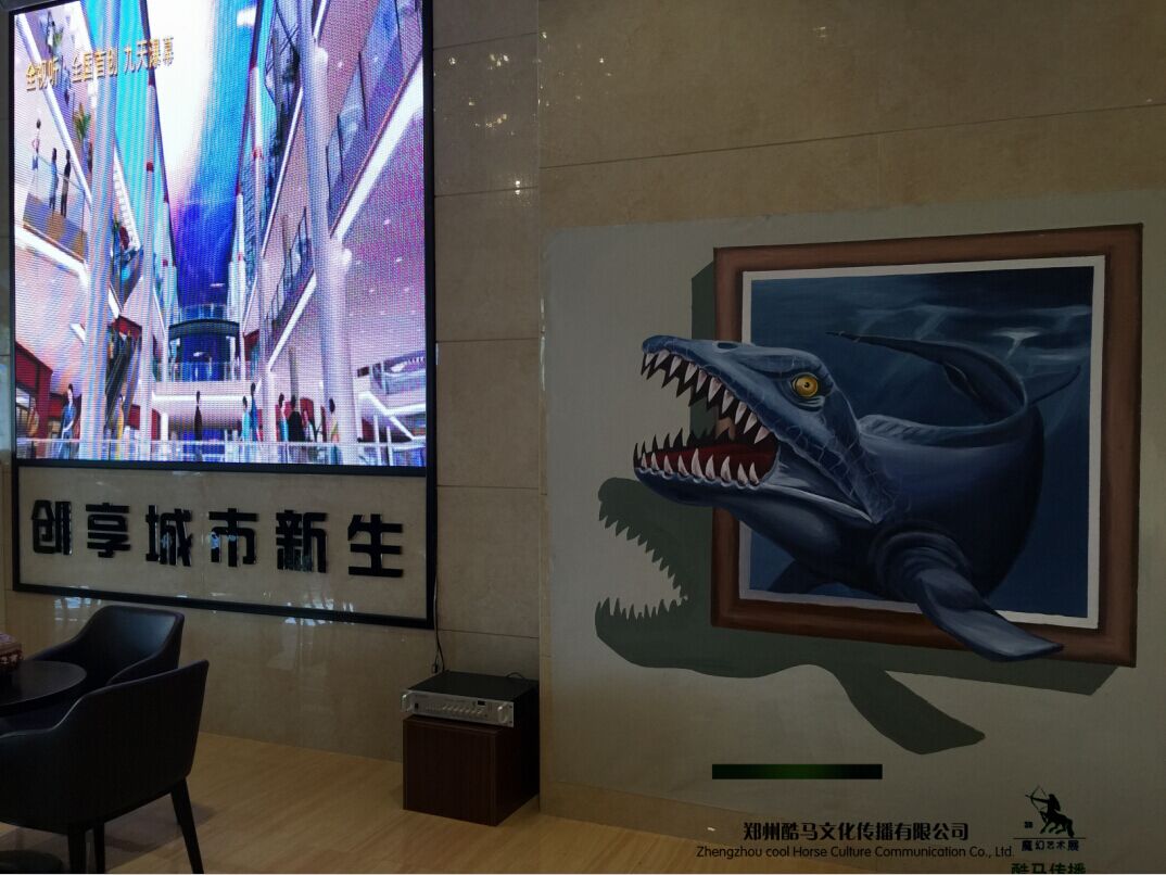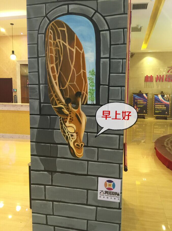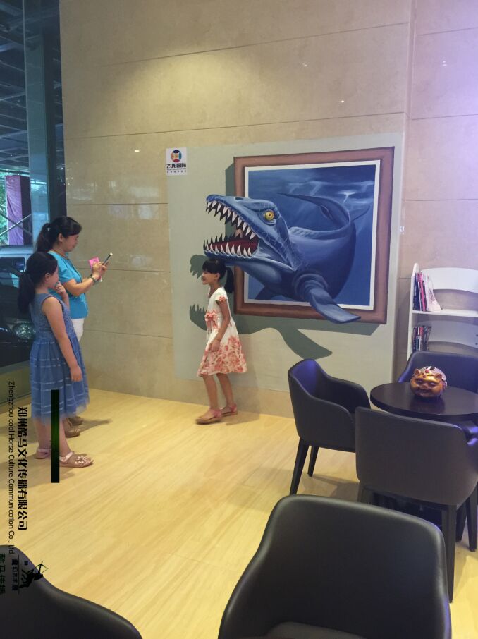 安阳太阳国际项目位于安阳市林州,本次售楼部3D画包装作品全部由手绘制作。进门一幅“天梯”3D地画设计,给客户以震撼的