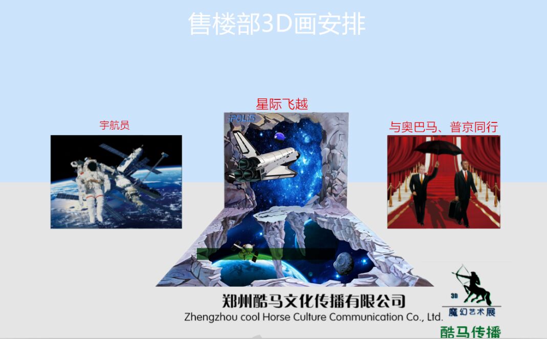 5D星空展动线布置;第三,现场手绘大师3D作品表演;以此达到动静结合之目的。
