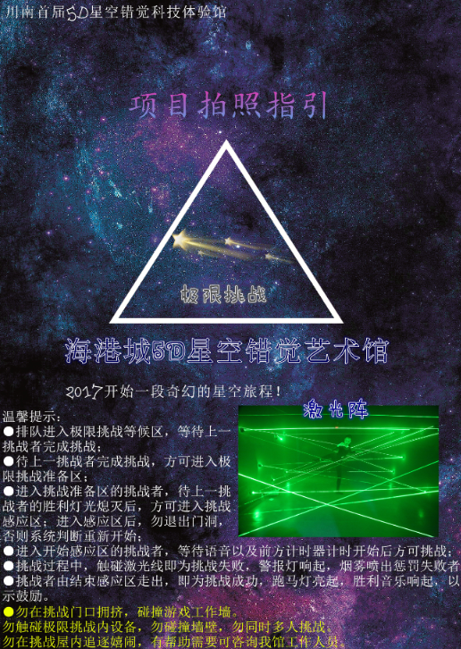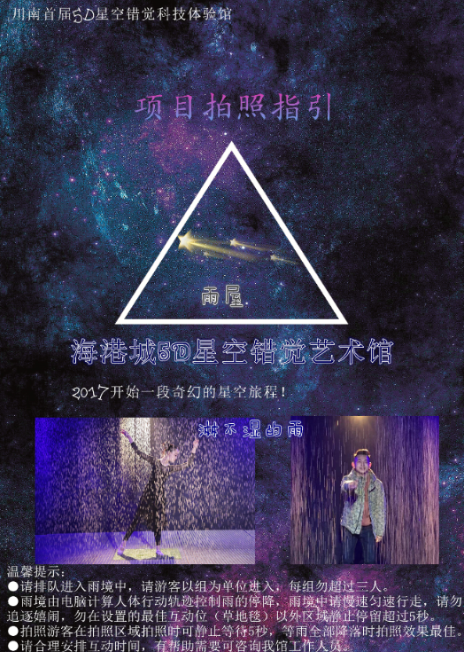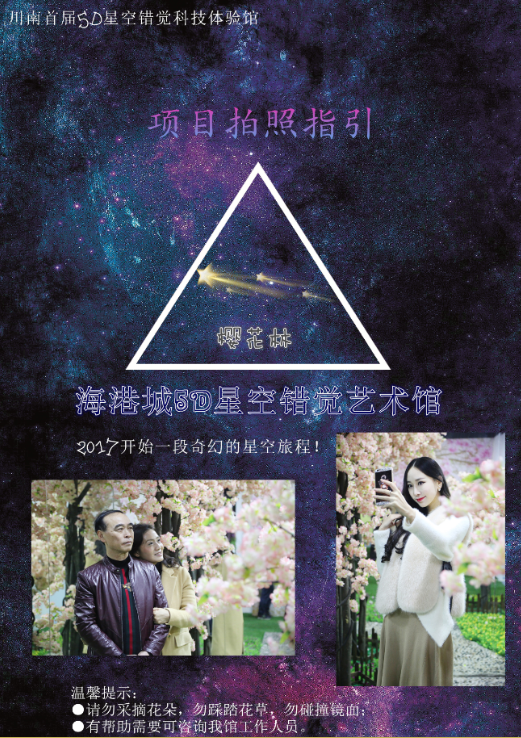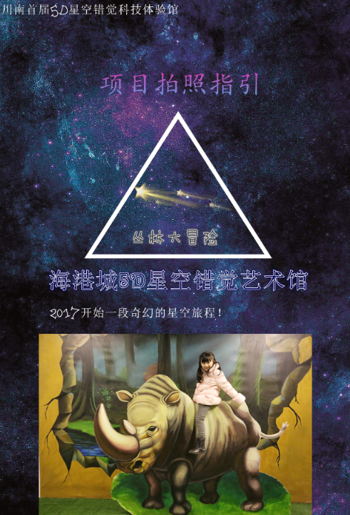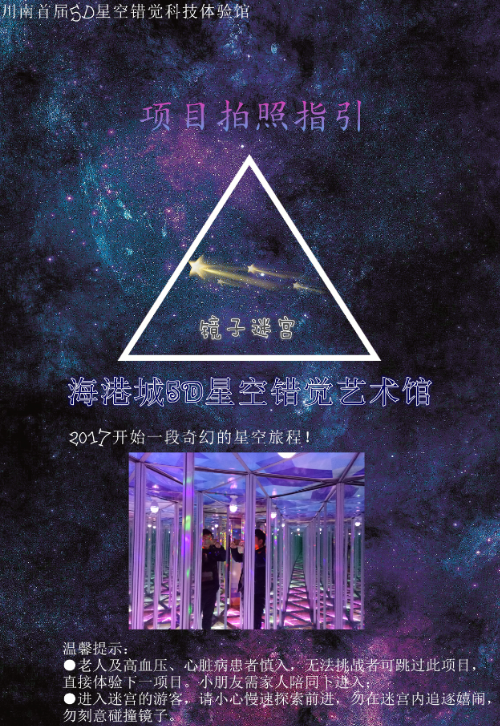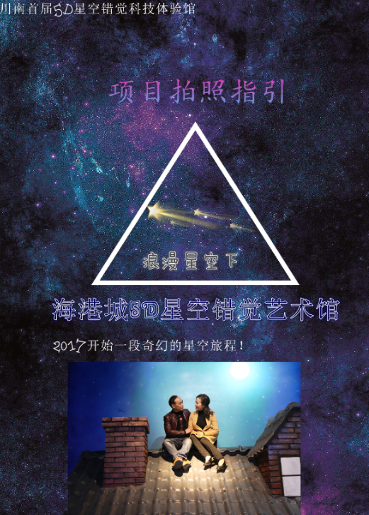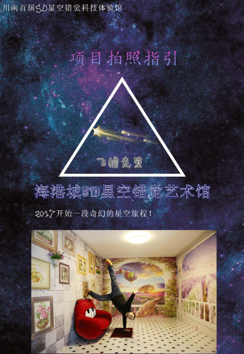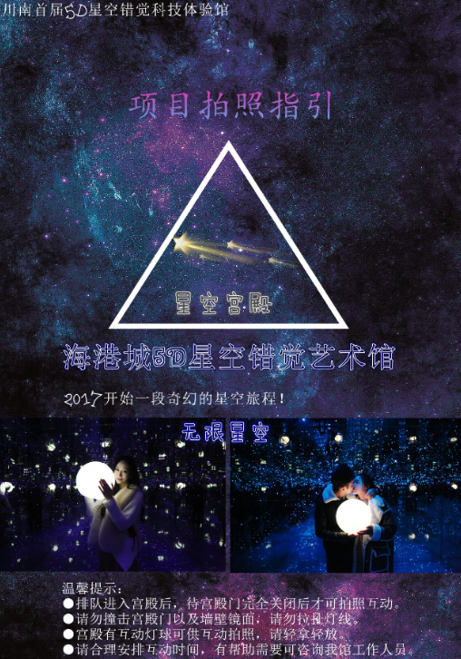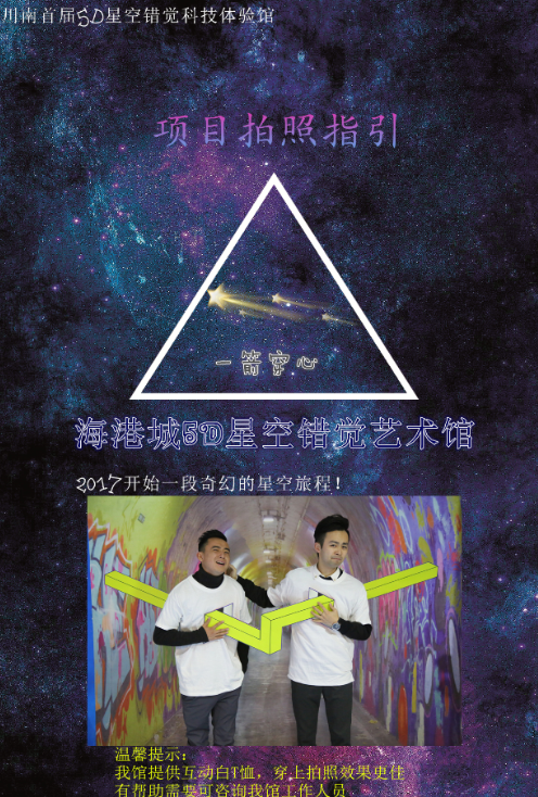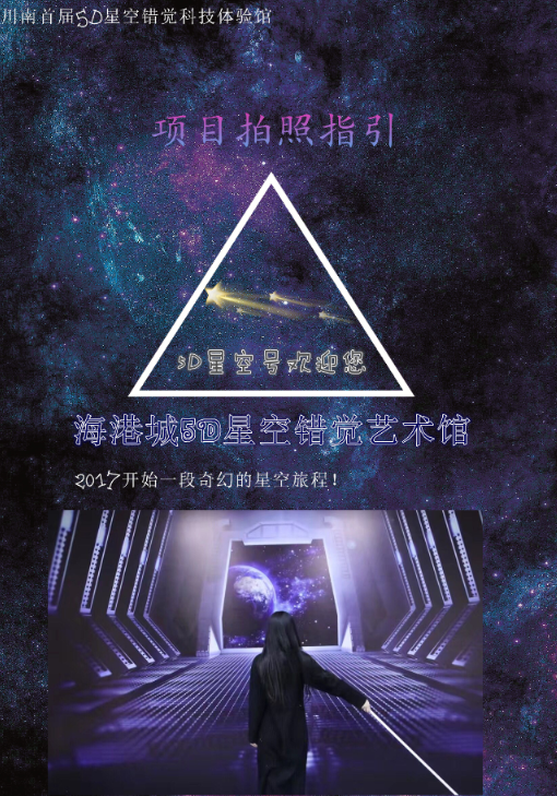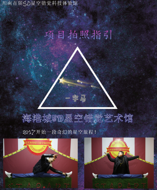 展厅地址:四川省宜宾市中坝大桥海港城5D星空错觉艺术馆