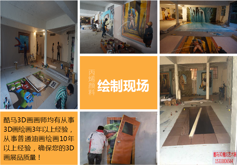2014年——酷马魔幻艺术展专业致力于品牌加盟,先后为加盟商提供面积超过10000平方的3D油画作品;从展厅作品制作、展厅作品布局设计、展厅隔断装修、各类错觉屋装修到展厅前期宣传以及营销策略等形成对加盟商的一整套服务链。