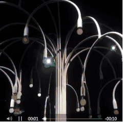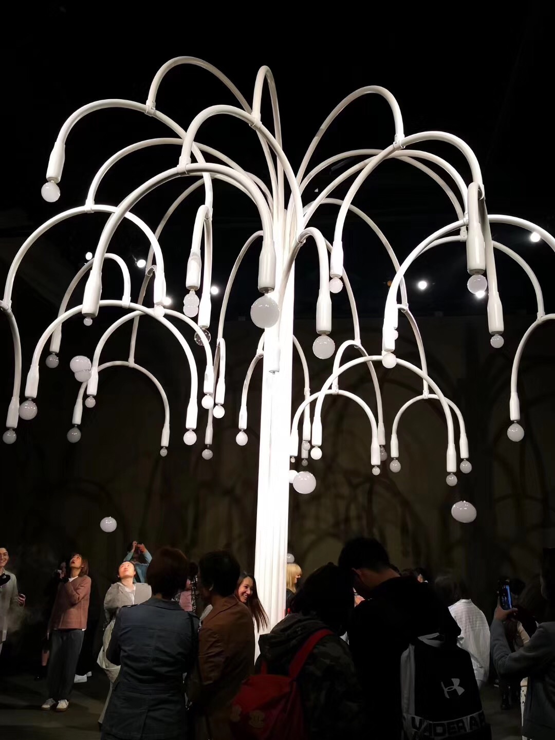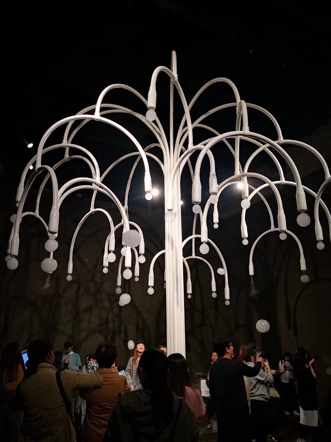 烟泡树,烟泡泡通过树一样的造型上落下,轻柔的砸在手中,砸在脸上。不管是享受被砸中的喜悦还是等待烟泡落下的期待都是一种独特的体验。